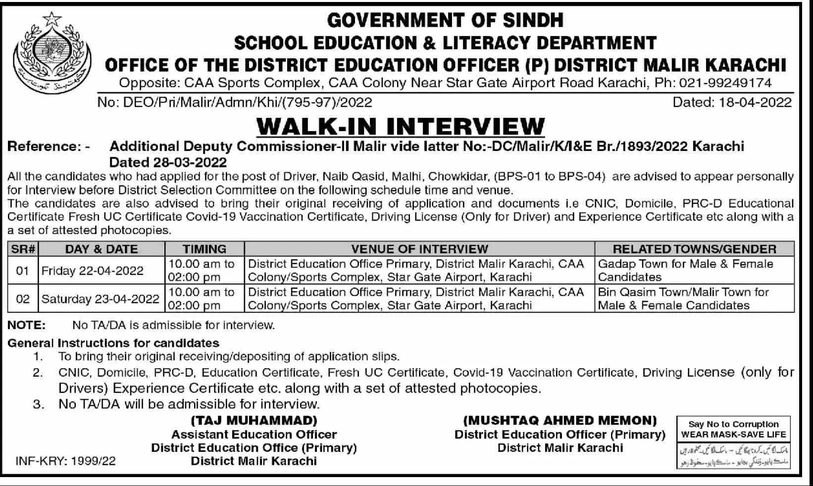 Interview In School Education & Literacy Department announce the career opportunities for the post of in for the fresh and experienced candidates on basis who have degree. Posted date of this post is 20/04/2022 and the last date is 23/04/2022. if you are eligible for this job apply before due date.