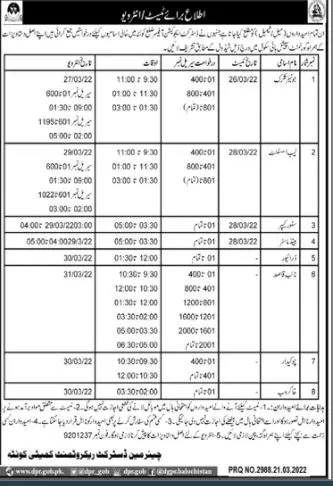 Interview Schedule District Education Officer Quetta announce the Contract career opportunities for the post of See Below Ad in Balochistan, Quetta for the fresh and experienced candidates on Contract basis who have Check Advertisement degree. Posted date of this post is 22/03/2022 and the last date is 30/03/2022. if you are eligible for this job apply before due date.