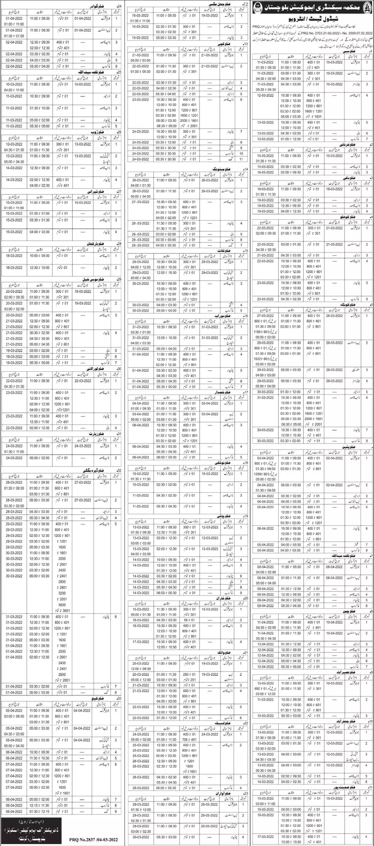 Interview Secondary Education Department Balochistan announce the Permanent career opportunities for the post of See Below Ad in Balochistan,Quetta for the fresh and experienced candidates on Permanent basis who have Check Advertisement degree. Posted date of this post is 05/03/2022 and the last date is 10/03/2022. if you are eligible for this job apply before due date.