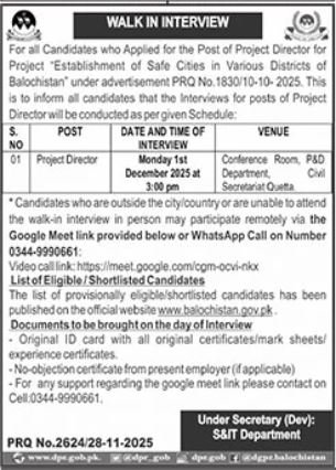 Interviews For Job At Science & Information Technology announce the Contract career opportunities for the post of See Below Ad in Balochistan, Quetta for the fresh and experienced candidates on Contract basis who have Check Advertisement degree. Posted date of this post is 29/11/2025 and the last date is 01/12/2025. if you are eligible for this job apply before due date.