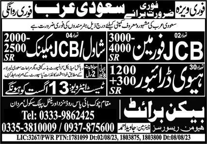 JCB Mechanic & JCB Foreman Jobs 2023 In Saudi Arabia announce the Contract career opportunities for the post of See Below Ad in Saudi Arabia for the fresh and experienced candidates on Contract basis who have Check Advertisement degree. Posted date of this post is 12/08/2023 and the last date is 13/08/2023. if you are eligible for this job apply before due date.