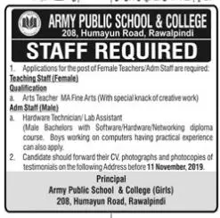 Army Public School And Colleges System Rawalpindi Jobs 2022