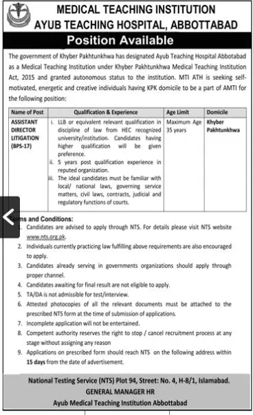 Ayub Teaching Hospital ATH Jobs 2026 For Medical Director