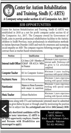 Center for Autism Rehabilitation & Training Sindh CARTS Jobs
