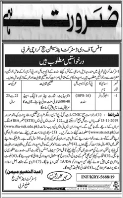 Jobs District & Session Judge District West Karachi announce the Adhoc career opportunities for the post of See Below Ad in Sindh for the fresh and experienced candidates on Adhoc basis who have Check Advertisement degree. Posted date of this post is 02/11/2019 and the last date is 15/11/2019. if you are eligible for this job apply before due date.