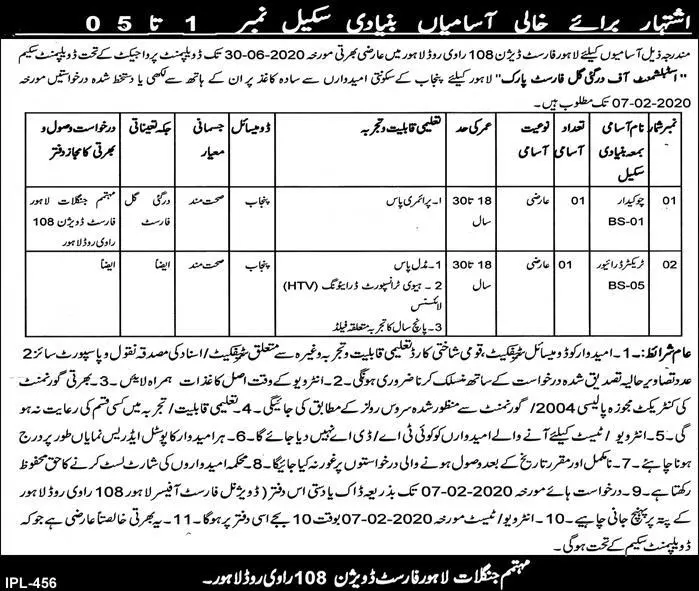 Forests Development & Working Plan Circle Lahore Jobs 2025