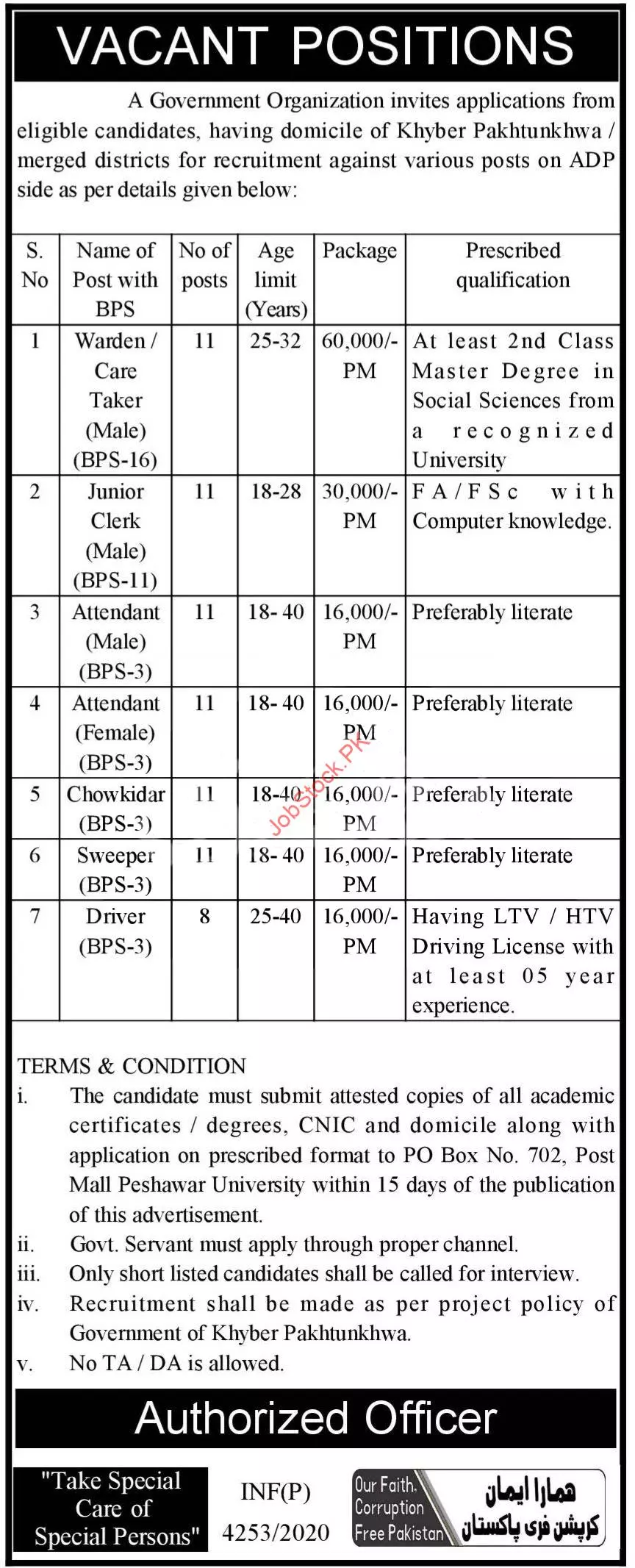 Jobs Government Organization Kpk announce the career opportunities for the post of in for the fresh and experienced candidates on basis who have degree. Posted date of this post is 13/11/2020 and the last date is 28/11/2020. if you are eligible for this job apply before due date.