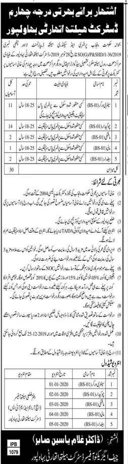 Jobs Health Department Bahawalpur Punjab (2 Ads)