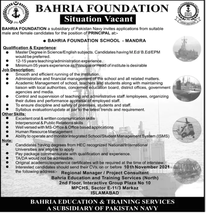 Bahria Foundation & Training System BEATS Islamabad Jobs