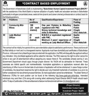 Jobs in Balochistan Human Capital Investment Project BHCIP announce the Contract career opportunities for the post of See Below Ad in Balochistan, Quetta for the fresh and experienced candidates on Contract basis who have Check Advertisement degree. Posted date of this post is 15/06/2022 and the last date is 29/06/2022. if you are eligible for this job apply before due date.