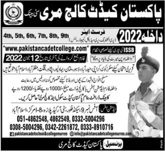 Jobs in cadet College Murree announce the Contract career opportunities for the post of See Below Ad in Punjab for the fresh and experienced candidates on Contract basis who have Check Advertisement degree. Posted date of this post is 30/05/2022 and the last date is 12/06/2022. if you are eligible for this job apply before due date.