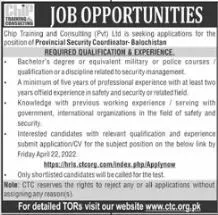 Jobs In CHIP Training and Consulting (Pvt.) Ltd announce the Contract career opportunities for the post of See Below Ad in Balochistan, Quetta for the fresh and experienced candidates on Contract basis who have Check Advertisement degree. Posted date of this post is 16/04/2022 and the last date is 22/04/2022. if you are eligible for this job apply before due date.