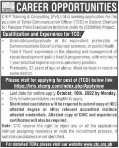 Jobs in Chip Training & Consulting Private Limited announce the Contract career opportunities for the post of See Below Ad in Balochistan, Chaman for the fresh and experienced candidates on Contract basis who have Check Advertisement degree. Posted date of this post is 08/10/2022 and the last date is 10/10/2022. if you are eligible for this job apply before due date.