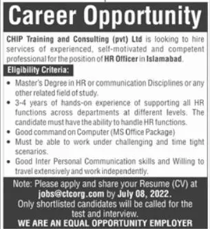 Jobs in Chip Training & Consulting Pvt Ltd announce the Contract career opportunities for the post of See Below Ad in Federal, Islamabad for the fresh and experienced candidates on Contract basis who have Check Advertisement degree. Posted date of this post is 02/07/2022 and the last date is 08/08/2022. if you are eligible for this job apply before due date.