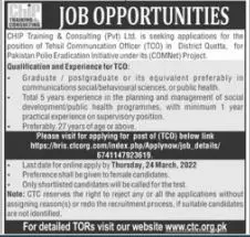 Jobs In Chip training Consulting Quetta announce the Contract career opportunities for the post of See Below Ad in Balochistan, Quetta for the fresh and experienced candidates on Contract basis who have Check Advertisement degree. Posted date of this post is 17/03/2022 and the last date is 24/03/2022. if you are eligible for this job apply before due date.