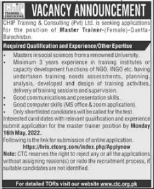 Jobs In Chip Traning Consulting Pvt Ltd announce the Contract career opportunities for the post of See Below Ad in Balochistan, Quetta for the fresh and experienced candidates on Contract basis who have Check Advertisement degree. Posted date of this post is 09/05/2022 and the last date is 16/05/2022. if you are eligible for this job apply before due date.