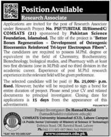 Jobs in COMSATS University Islamabad announce the Contract career opportunities for the post of See Below Ad in Federal, Islamabad for the fresh and experienced candidates on Contract basis who have Check Advertisement degree. Posted date of this post is 20/06/2022 and the last date is 05/07/2022. if you are eligible for this job apply before due date.