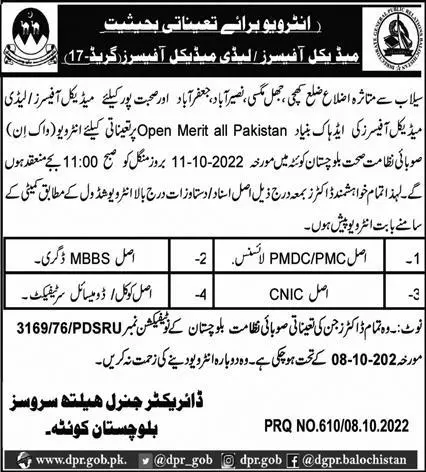 Jobs in Director General Health Services Balochistan 2022