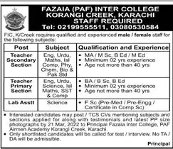 Jobs In Fazaia Inter College Korangi Creek Karachi announce the Contract career opportunities for the post of See Below Ad in Sindh, Karachi for the fresh and experienced candidates on Contract basis who have Check Advertisement degree. Posted date of this post is 13/03/2022 and the last date is 21/03/2022. if you are eligible for this job apply before due date.