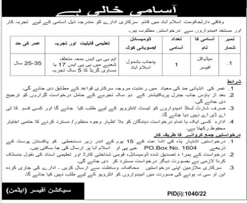 Jobs in Federal Government Islamabad announce the Contract career opportunities for the post of See Below Ad in Federal, Islamabad for the fresh and experienced candidates on Contract basis who have Check Advertisement degree. Posted date of this post is 20/08/2022 and the last date is 04/09/2022. if you are eligible for this job apply before due date.