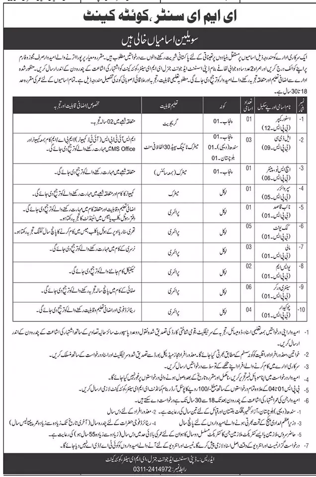 Jobs In Government Sector Organization announce the Permanent career opportunities for the post of See Below Ad in Balochistan,Quetta for the fresh and experienced candidates on Permanent basis who have Check Advertisement degree. Posted date of this post is 07/12/2021 and the last date is 22/12/2021. if you are eligible for this job apply before due date.