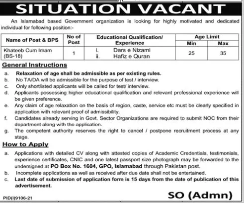 Jobs in Islamabad Based Government Organization announce the Contract career opportunities for the post of See Below Ad in Federal, Islamabad for the fresh and experienced candidates on Contract basis who have Check Advertisement degree. Posted date of this post is 30/06/2022 and the last date is 15/07/2022. if you are eligible for this job apply before due date.