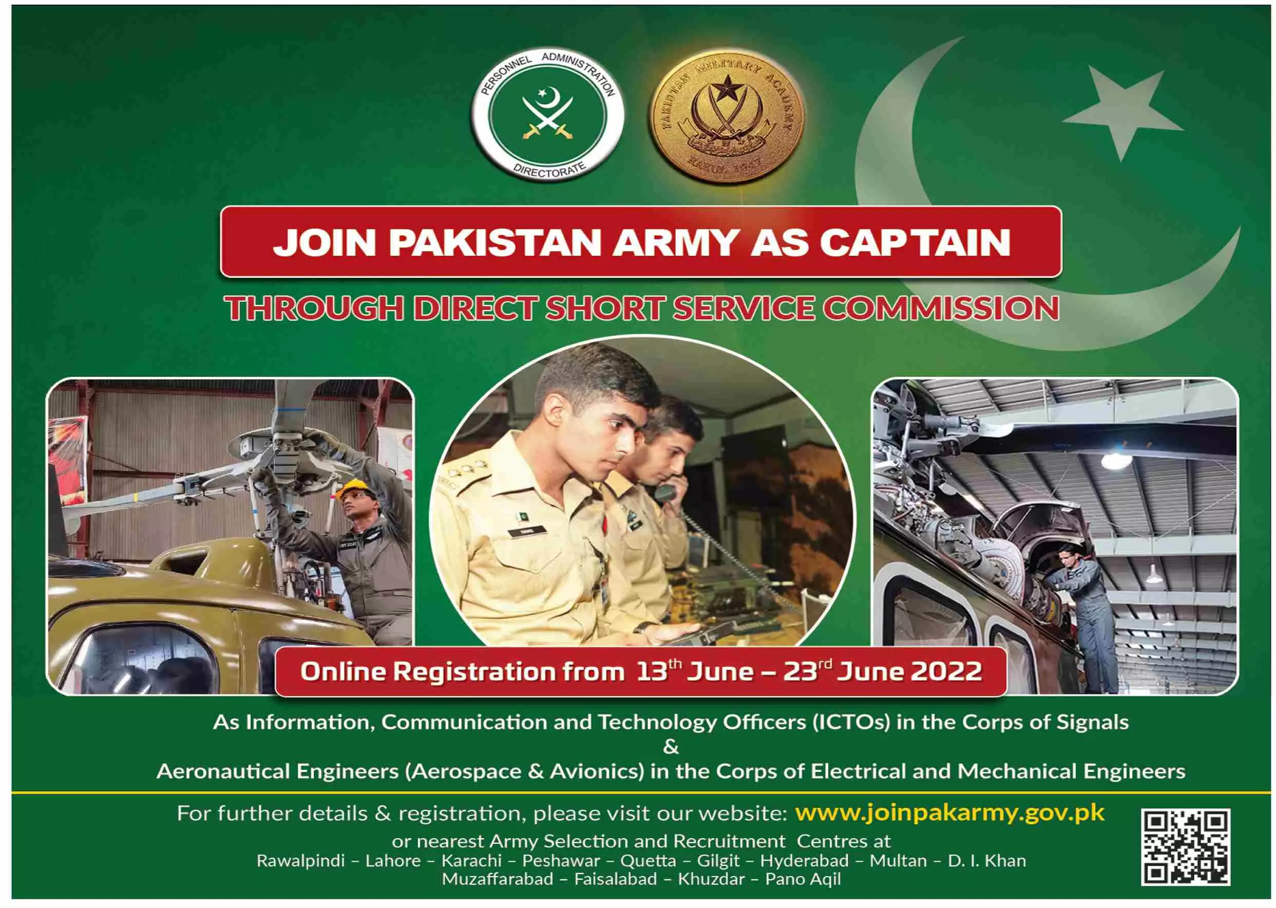 Jobs in Join Pak Army as Captain announce the Permanent career opportunities for the post of See Below Ad in Punjab for the fresh and experienced candidates on Permanent basis who have Check Advertisement degree. Posted date of this post is 12/06/2022 and the last date is 23/06/2022. if you are eligible for this job apply before due date.