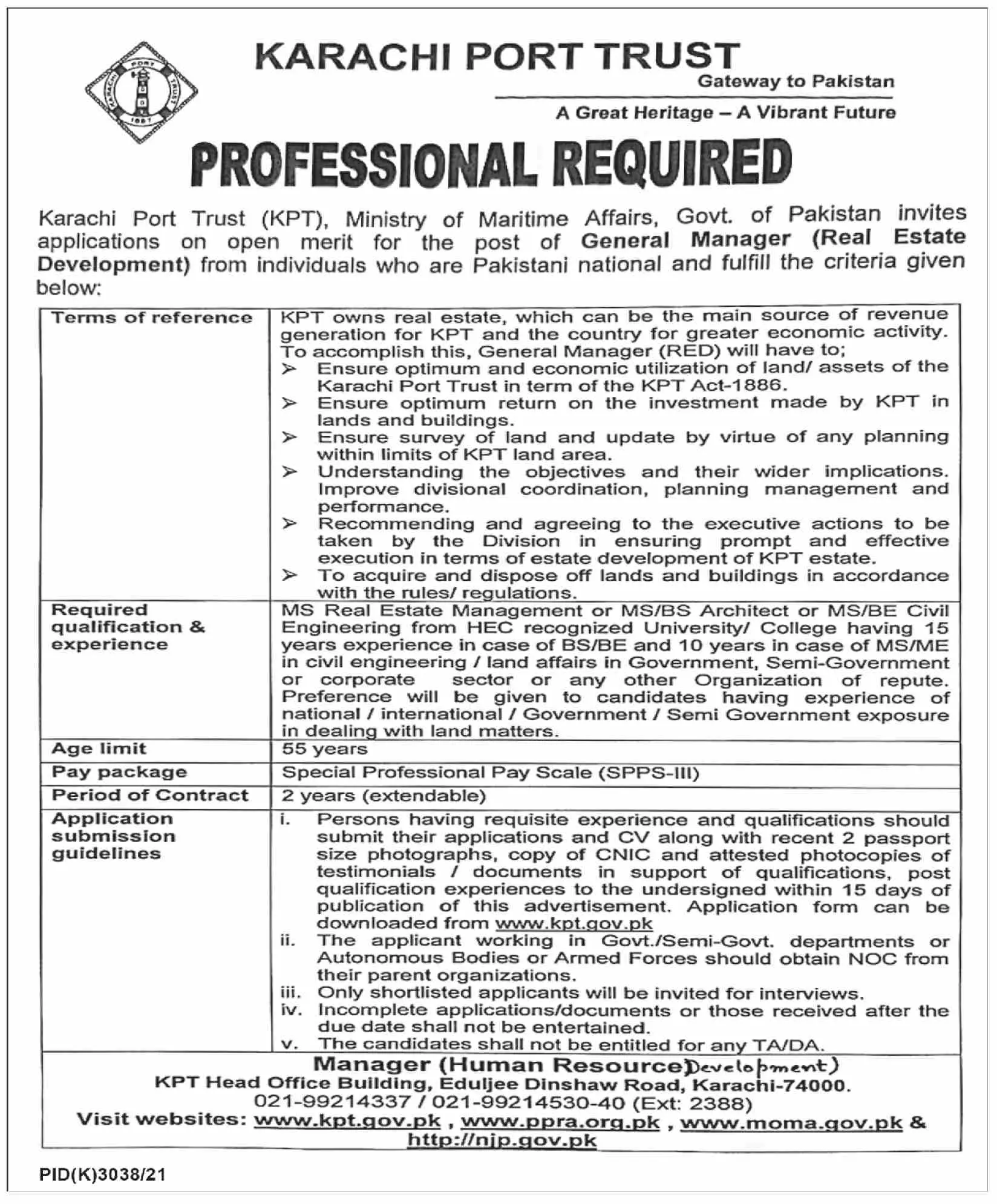 Jobs In Karachi Port Trust announce the Contract career opportunities for the post of See Below Ad in Sindh, Karachi for the fresh and experienced candidates on Contract basis who have Check Advertisement degree. Posted date of this post is 16/04/2022 and the last date is 01/05/2022. if you are eligible for this job apply before due date.