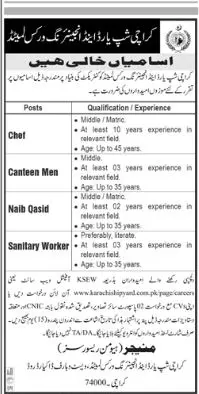Jobs in Karachi Shipyard and Engineering Works Limited announce the Contract career opportunities for the post of See Below Ad in Sindh, Karachi for the fresh and experienced candidates on Contract basis who have Check Advertisement degree. Posted date of this post is 19/06/2022 and the last date is 04/07/2022. if you are eligible for this job apply before due date.