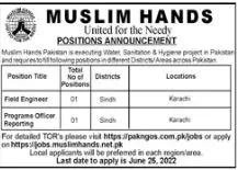 Jobs in Muslim Hands (MH) announce the Contract career opportunities for the post of See Below Ad in Sindh, Karachi for the fresh and experienced candidates on Contract basis who have Check Advertisement degree. Posted date of this post is 20/06/2022 and the last date is 25/06/2022. if you are eligible for this job apply before due date.