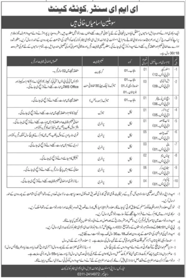 Jobs in pakistan EME center Quetta Cantt