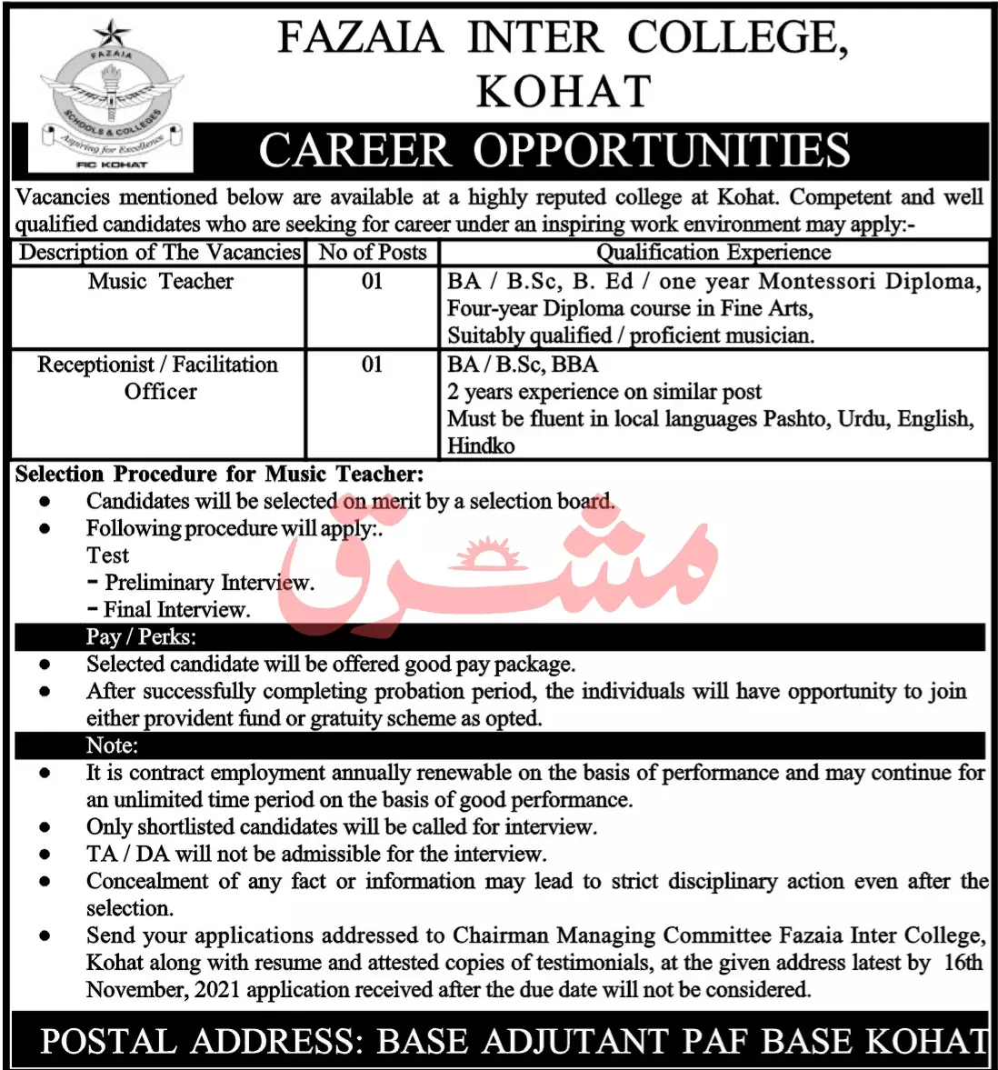 Jobs in Pakistan Faiza Inter Collage Kohat