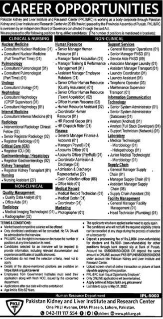 Jobs In Pakistan Kidney and Liver Institute And Research announce the Contract career opportunities for the post of See Below Ad in Punjab, Lahore for the fresh and experienced candidates on Contract basis who have Check Advertisement degree. Posted date of this post is 15/05/2022 and the last date is 31/05/2022. if you are eligible for this job apply before due date.