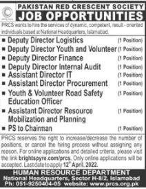 Jobs In Pakistan Red Crescent Society announce the Contract career opportunities for the post of See Below Ad in Federal, Islamabad for the fresh and experienced candidates on Contract basis who have Check Advertisement degree. Posted date of this post is 29/03/2022 and the last date is 12/04/2022. if you are eligible for this job apply before due date.