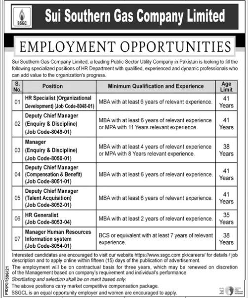 Jobs in Pakistan Sui Southern Gas Company Limited Pakistan
