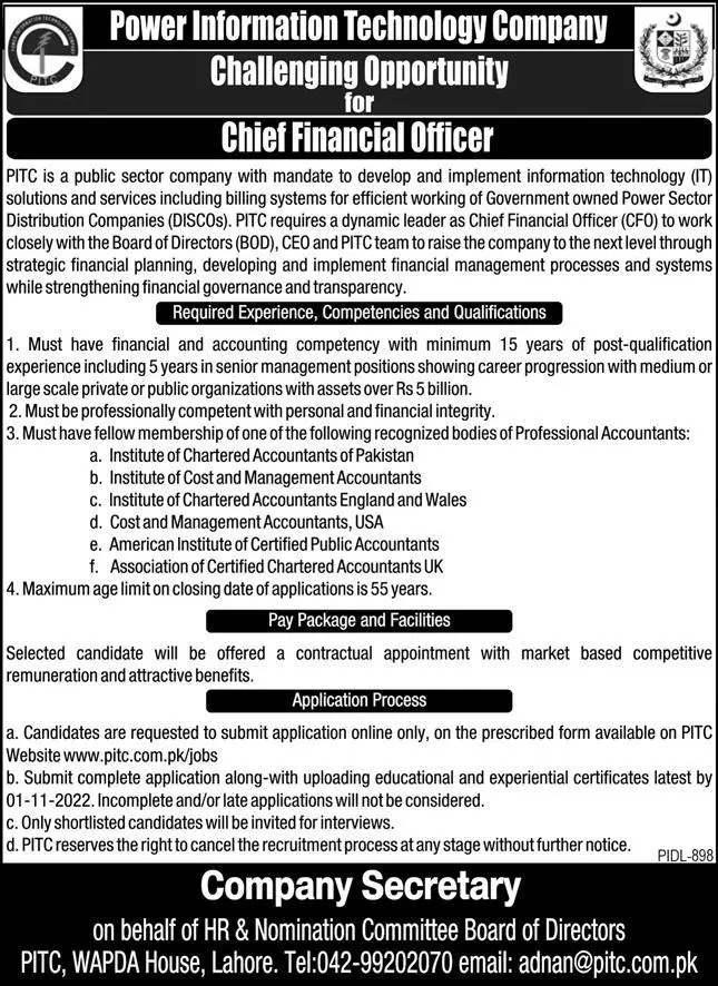 Jobs in Power Information Technology Company announce the Contract career opportunities for the post of See Below Ad in Punjab,Lahore for the fresh and experienced candidates on Contract basis who have Check Advertisement degree. Posted date of this post is 03/10/2022 and the last date is 01/11/2022. if you are eligible for this job apply before due date.