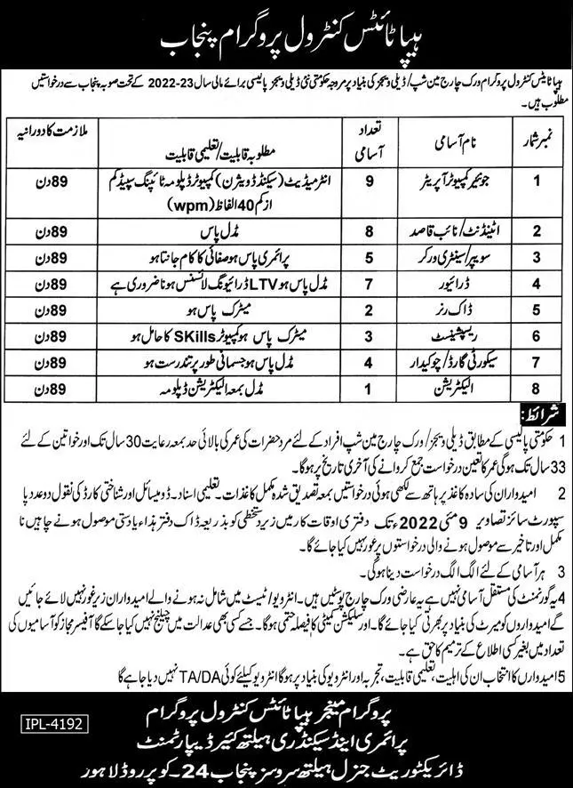 Jobs In Primary and Secondary Health Care Department announce the Contract career opportunities for the post of See Below Ad in Punjab, Lahore for the fresh and experienced candidates on Contract basis who have Check Advertisement degree. Posted date of this post is 22/04/2022 and the last date is 09/05/2022. if you are eligible for this job apply before due date.
