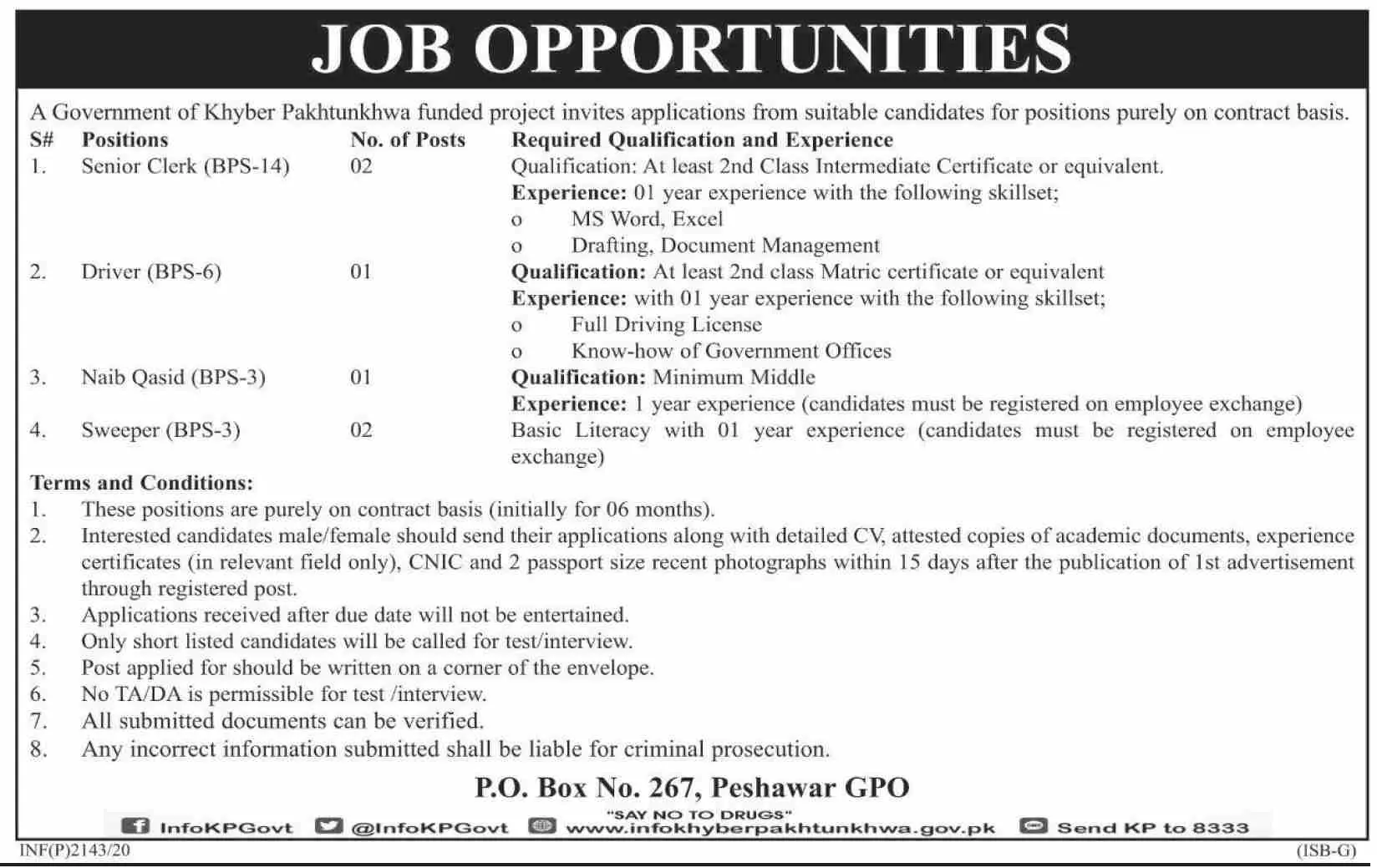 - Send your applications on PO Box No. 267, Peshawar GPO.