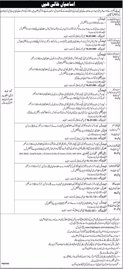 - Public Sector Organization is looking for candidates for following posts as per job advertisement published in daily Jang Newspaper of August 7, 2022 for location Islamabad, rawalpindi Islamabad Pakistan: It Officer Assistant Director Commercial Assistant Assistant Director Governance Assistant Director Cyber Security It Officer Database Assistant Director Ba Executive and Associate Engineer Preferred Education is B.E, Master, ACCA, BIT and Bachelor etc.