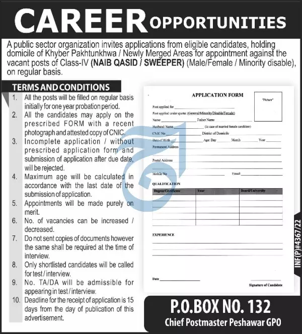 Jobs in Public Sector organization Peshawar announce the Contract career opportunities for the post of See Below Ad in Khyber Pakhtunkhwa, Peshawar for the fresh and experienced candidates on Contract basis who have Check Advertisement degree. Posted date of this post is 29/07/2022 and the last date is 13/08/2022. if you are eligible for this job apply before due date.