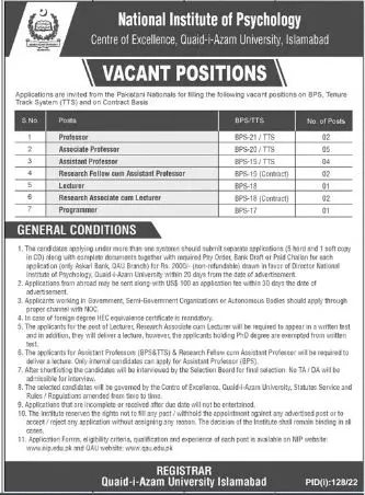 Jobs in Quaid i Azam University Islamabad announce the Contract career opportunities for the post of See Below Ad in Federal, Islamabad for the fresh and experienced candidates on Contract basis who have Check Advertisement degree. Posted date of this post is 08/07/2022 and the last date is 28/07/2022. if you are eligible for this job apply before due date.