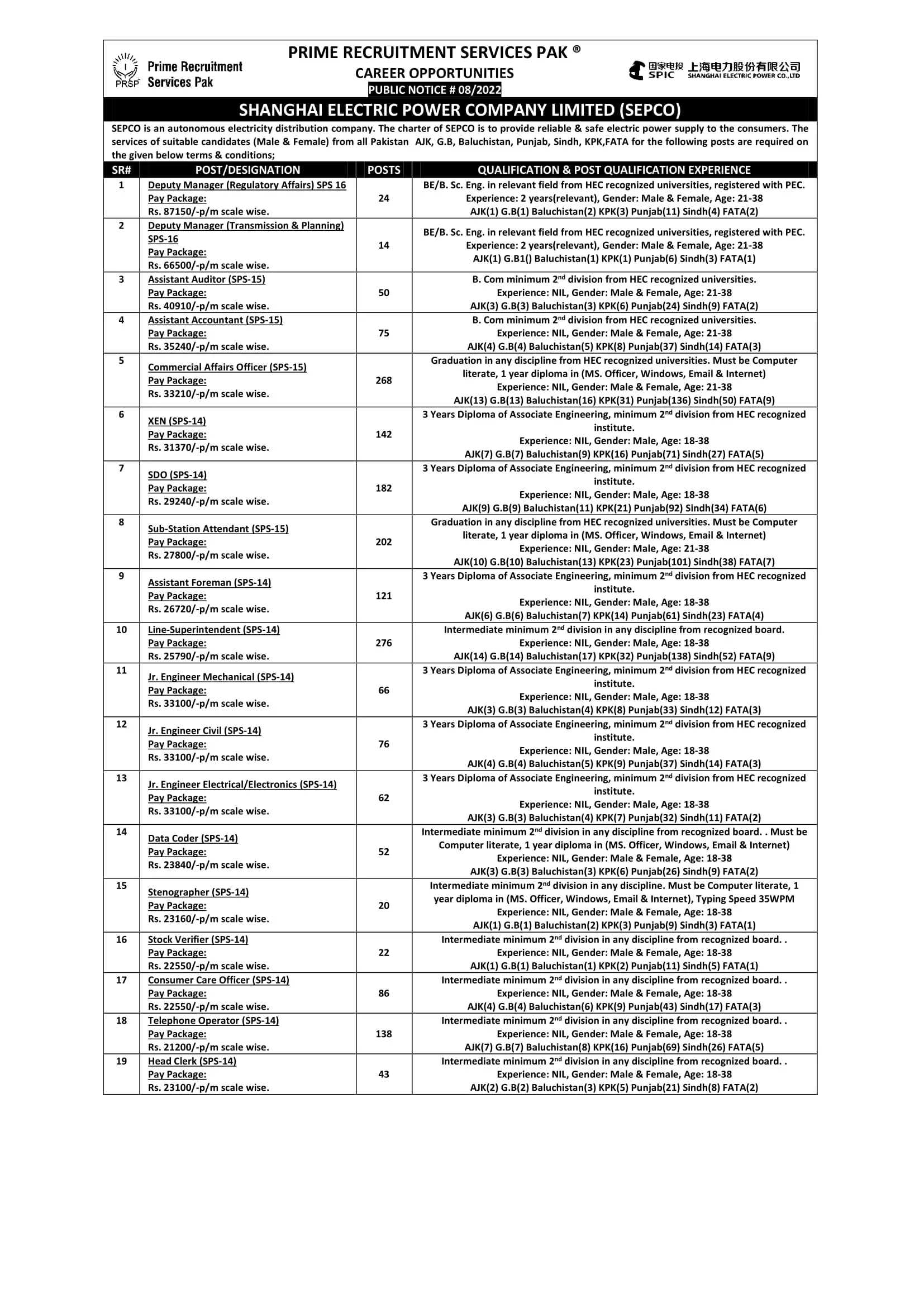 Jobs In Shanghai Electric Power Company Limited announce the Contract career opportunities for the post of See Below Ad in Federal for the fresh and experienced candidates on Contract basis who have Check Advertisement degree. Posted date of this post is 13/05/2022 and the last date is 26/05/2022. if you are eligible for this job apply before due date.