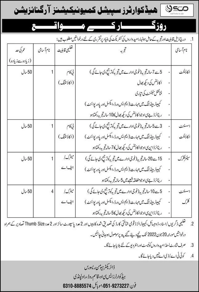 Jobs in Special Communication Organization Rawalpindi announce the Contract career opportunities for the post of See Below Ad in Punjab, Rawalpindi for the fresh and experienced candidates on Contract basis who have Check Advertisement degree. Posted date of this post is 09/06/2022 and the last date is 20/06/2022. if you are eligible for this job apply before due date.
