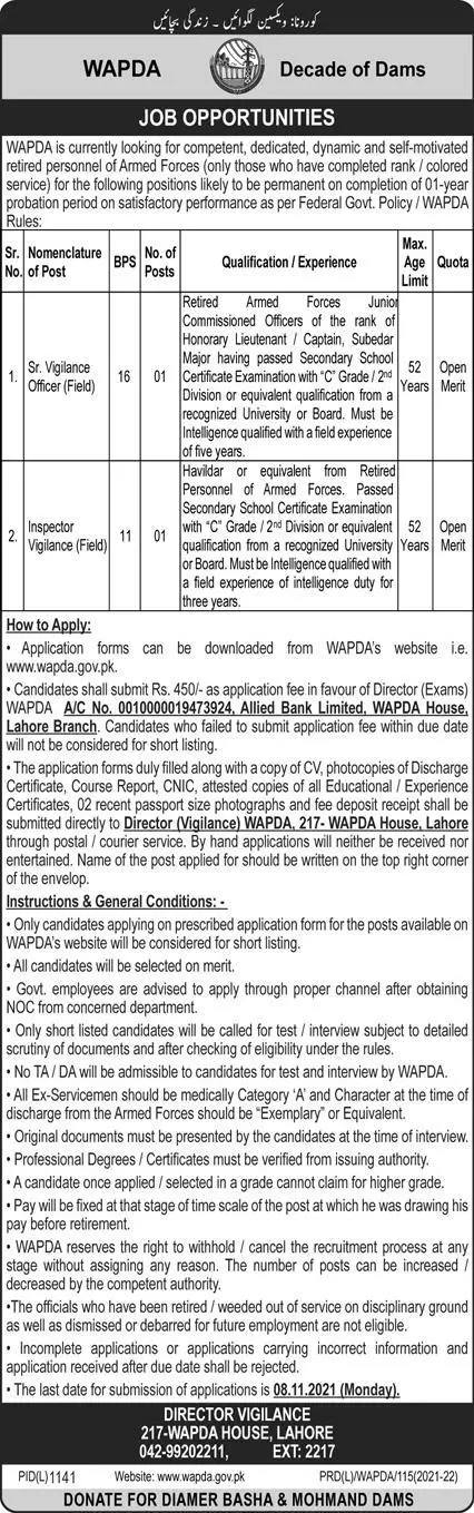 Water And Power Development Authority WAPDA Lahore Jobs 2025