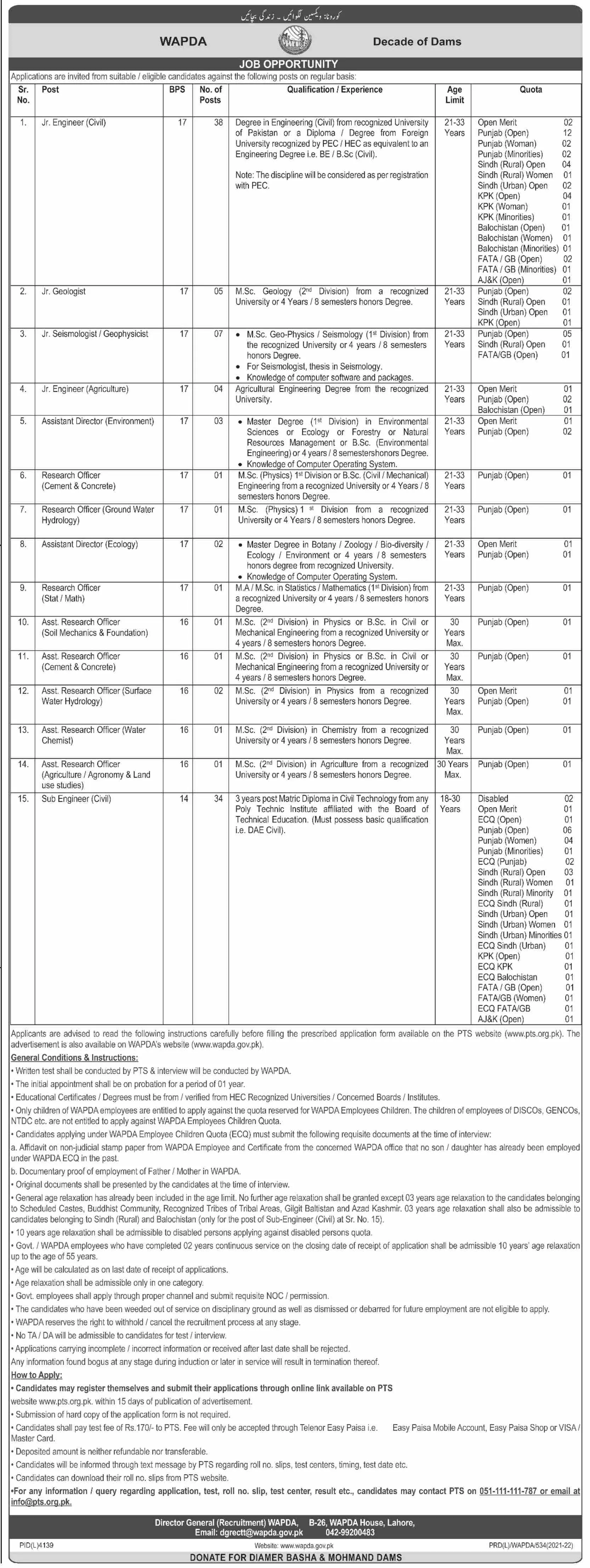 Jobs in Water and Development Authority Wapda announce the Permanent career opportunities for the post of See Below Ad in Punjab, Lahore for the fresh and experienced candidates on Permanent basis who have Check Advertisement degree. Posted date of this post is 02/07/2022 and the last date is 17/07/2022. if you are eligible for this job apply before due date.