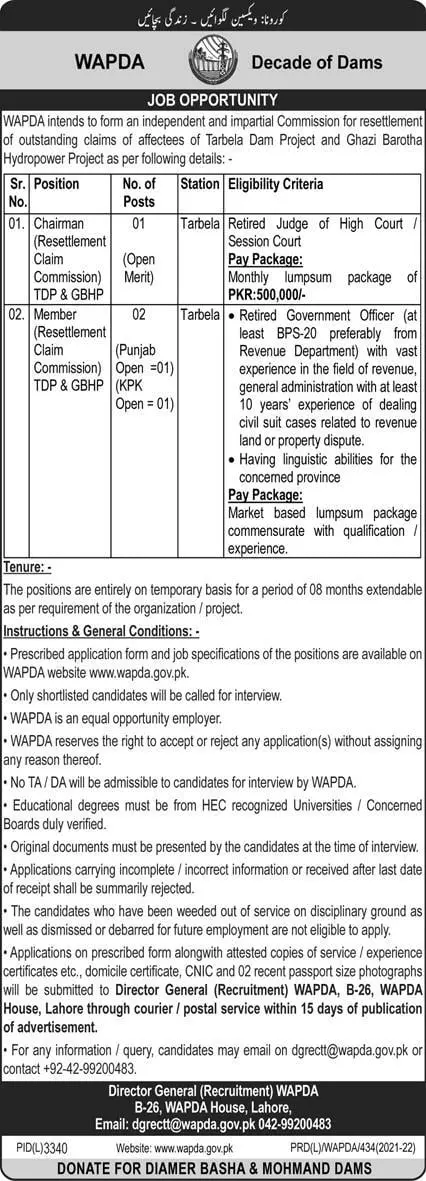 Jobs In Water and Power Development Authority (WAPDA) announce the career opportunities for the post of in for the fresh and experienced candidates on basis who have degree. Posted date of this post is 22/04/2022 and the last date is 07/05/2022. if you are eligible for this job apply before due date.
