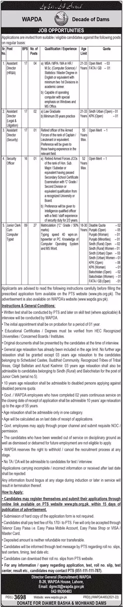 Jobs in Water And Power Development Authority WAPDA announce the Permanent career opportunities for the post of See Below Ad in Punjab, Lahore for the fresh and experienced candidates on Permanent basis who have Check Advertisement degree. Posted date of this post is 22/05/2022 and the last date is 05/06/2022. if you are eligible for this job apply before due date.
