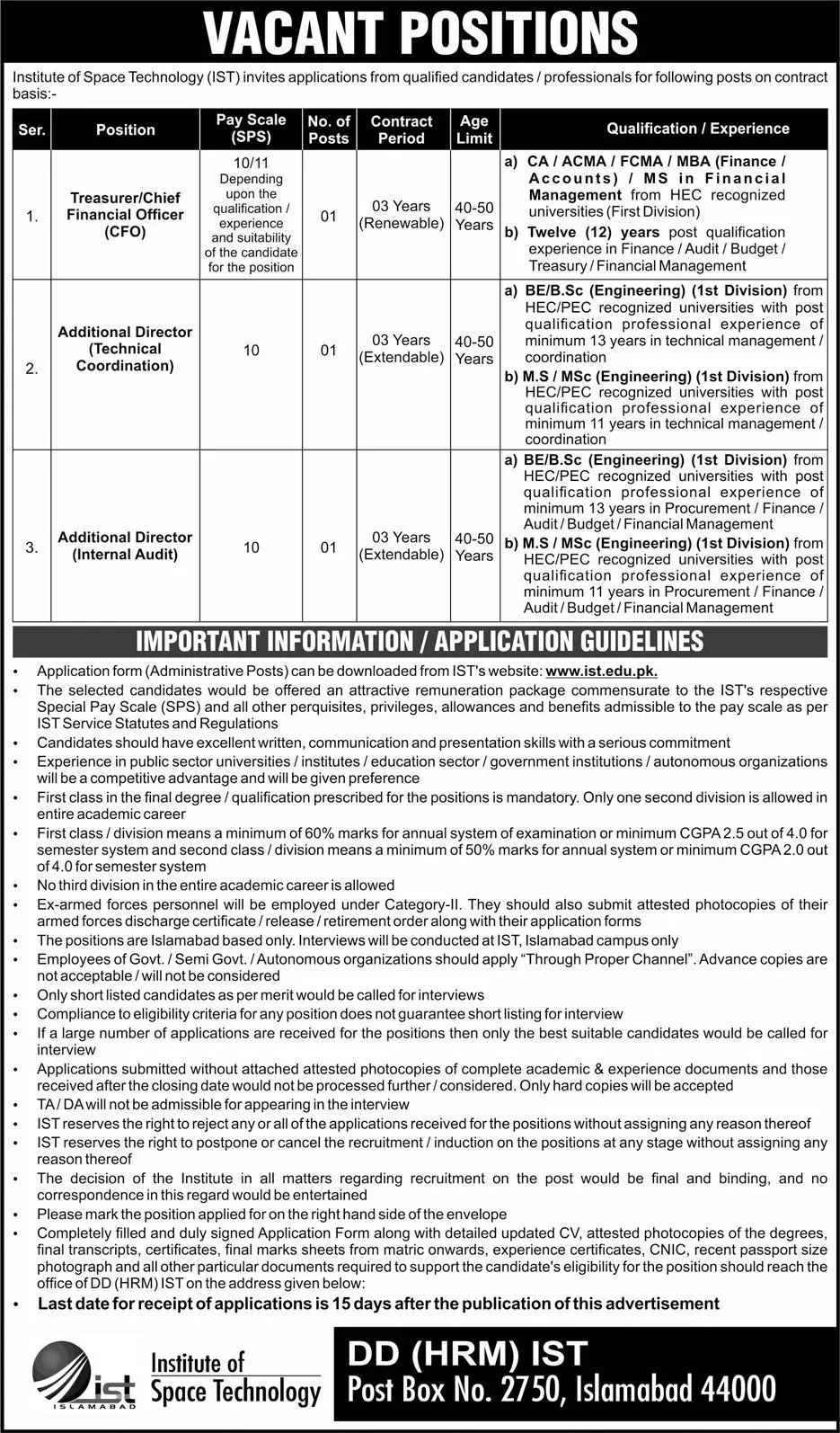 IST Institute Of Space Technology Islamabad Jobs 2025