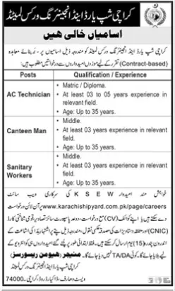 Jobs Karachi Shipyard and Engineering Works Karachi 2021 announce the Contract career opportunities for the post of check the advertisement in Pakistan,Karachi for the fresh and experienced candidates on Contract basis who have Check Advertisement degree. Posted date of this post is 18/11/2021 and the last date is 02/12/2021. if you are eligible for this job apply before due date.