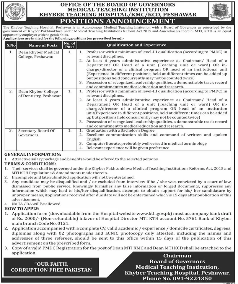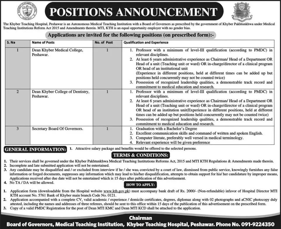 Khyber Teaching Hospital Peshawar Jobs 2025